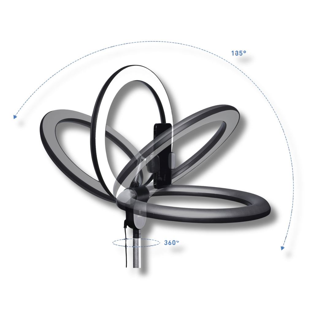 - Aura Ring Lamp (kruhová hlava + teleskopický stojan + základna)