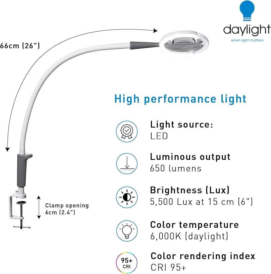 - Ērts palielinājums: lēca 13 cm / 5 collas, 1,75×, daļēji bezrāmja dizains plašam un ērti lietojamam redzes laukam.