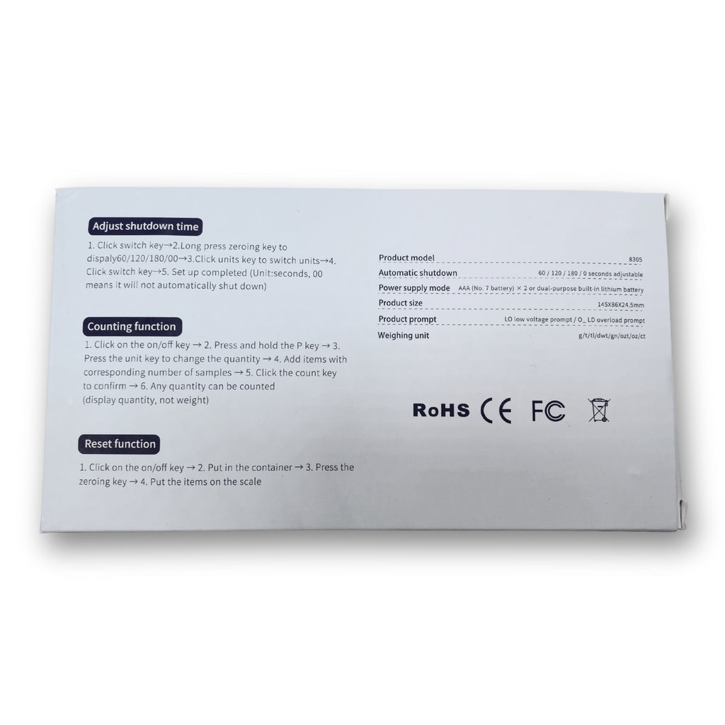- Multifunkční použití: podporuje několik měřicích jednotek (g, oz, gn, ct, ozt, tl, dwt).